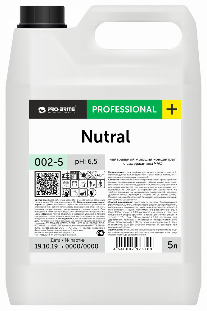 002-5 Nutral Жидкий концентрат без запаха против улично-бытовых загрязнений 5л.