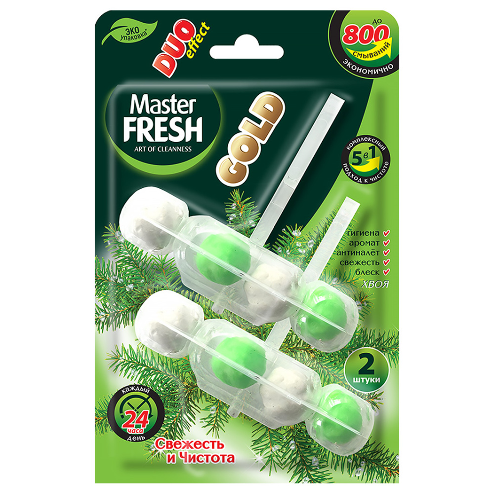 С0007427 Master FRESH подвесной блок для унитаза DUO EFFECT 800 смываний 5в1 формула GOLD ХВОЯ, 2шт